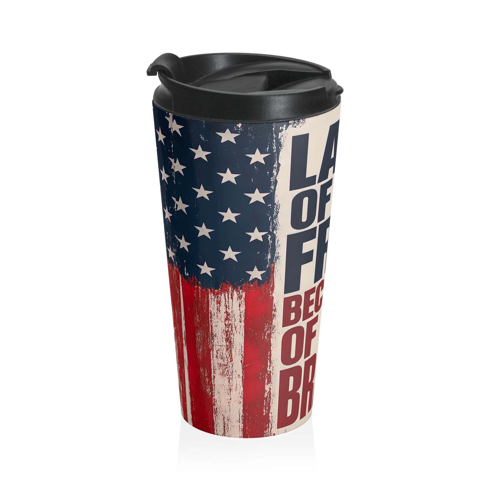 Land of the Free Because of the Brave Travel Tumbler – Rustic American Flag Patriotic Drinkware
